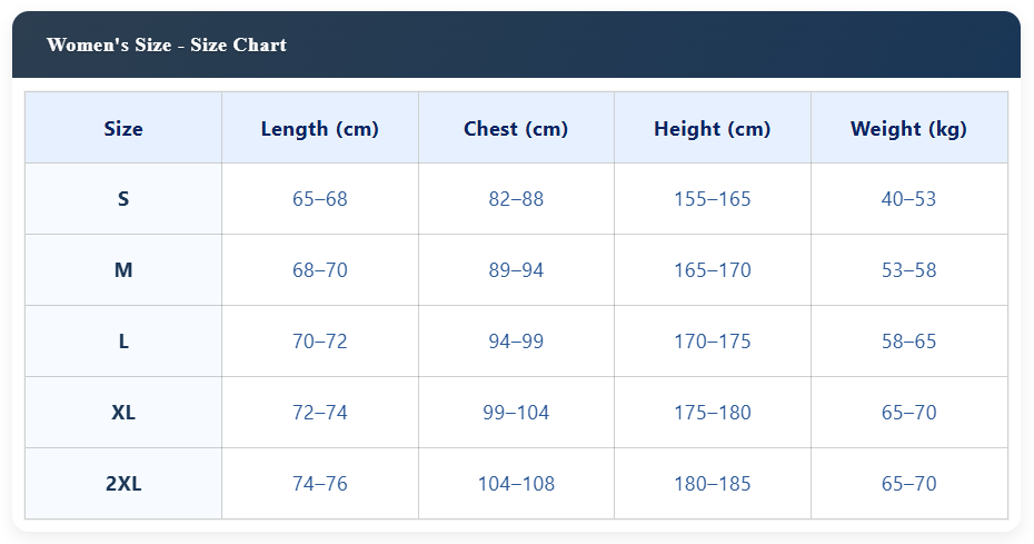 Note: Slight variations (1-2cm) may occur due to measurement methods